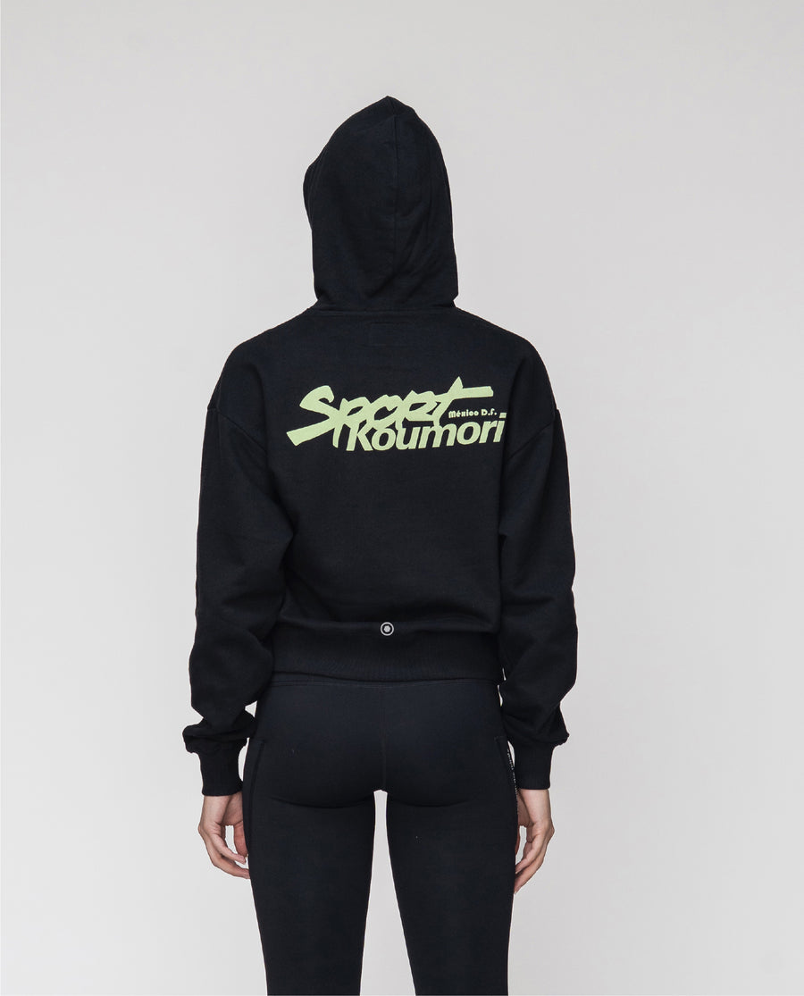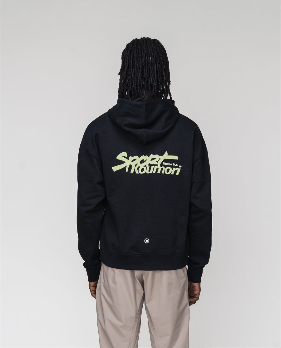 This hoodie features a bold 'Koumori Sports' graphic on the back in a green tone. Designed for runners and explorers alike, it offers a perfect weight and relaxed fit for everyday comfort and movement.